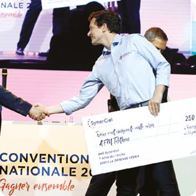 Depuis 2018, Synerciel est partenaire de lâAFM TĂ©lĂ©thon et soutient lâassociation en aidant au financement et Ă la rĂ©novation de la maison dâĂtiolles en 2021. Lieu dâaccueil pour les patients et familles qui se rendent Ă Paris pour des examens mĂ©dicaux, ce logement a pour ambition de devenir une vĂ©ritable Ă©cole de lâautonomie. Plus rĂ©cemment, la mobilisation du RĂ©seau a permis le financement dâun vĂ©hicule PMR favorisant les dĂ©placements des malades. LâannĂ©e 2024 fut marquĂ©e par la premiĂšre Ă©dition du TĂ©lĂ©thon du BĂątiment. OrganisĂ©e au stade Emile Anthoine par Synerciel et une vingtaine dâentreprises partenaires dont de nombreux nĂ©goces, cet Ă©vĂ©nement a rassemblĂ© prĂšs de 700 participants au pied de la Tour Eiffel, tous animĂ©s par une cause commune : soutenir la recherche sur les troubles musculo-squelettiques (TMS) et les maladies orphelines.